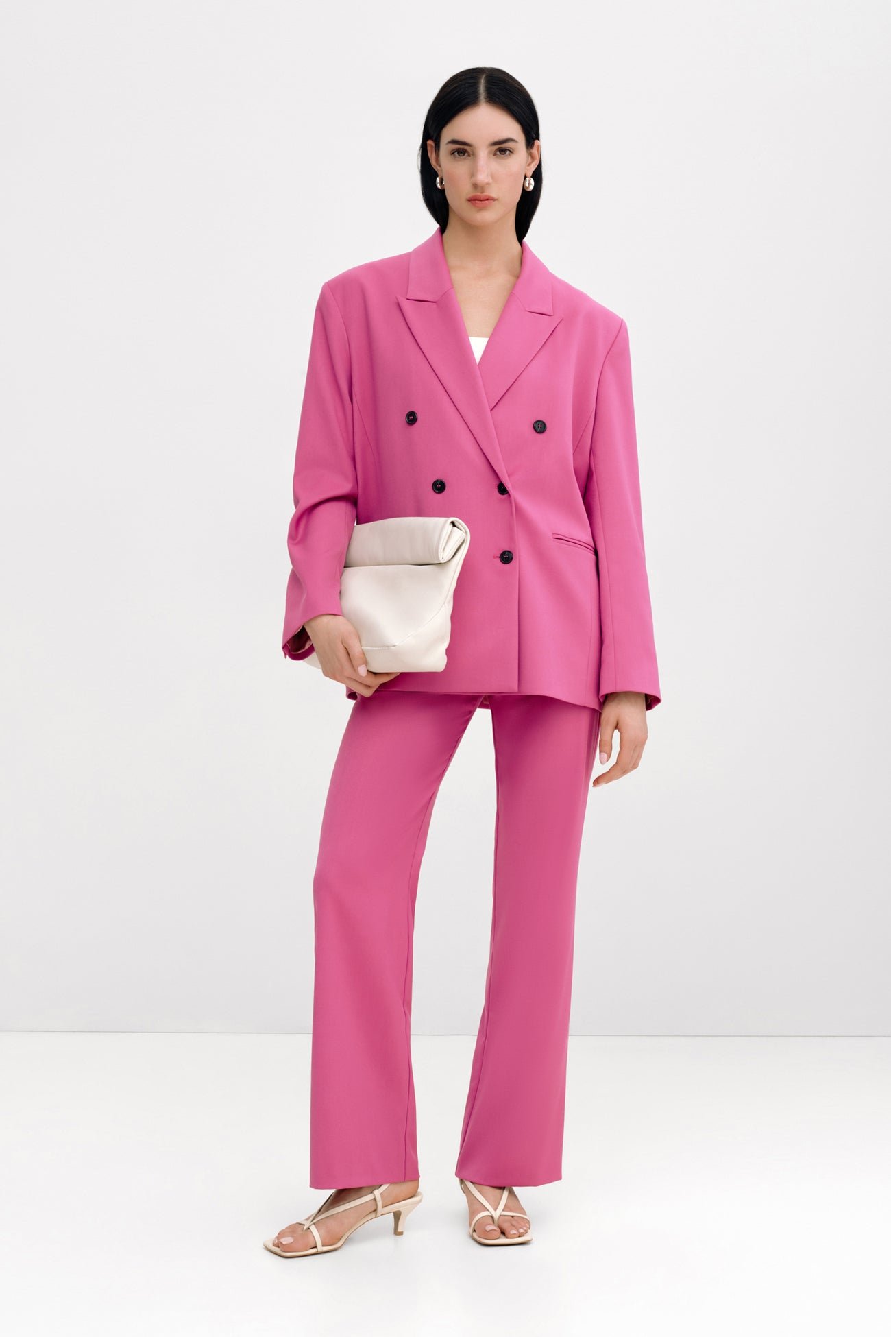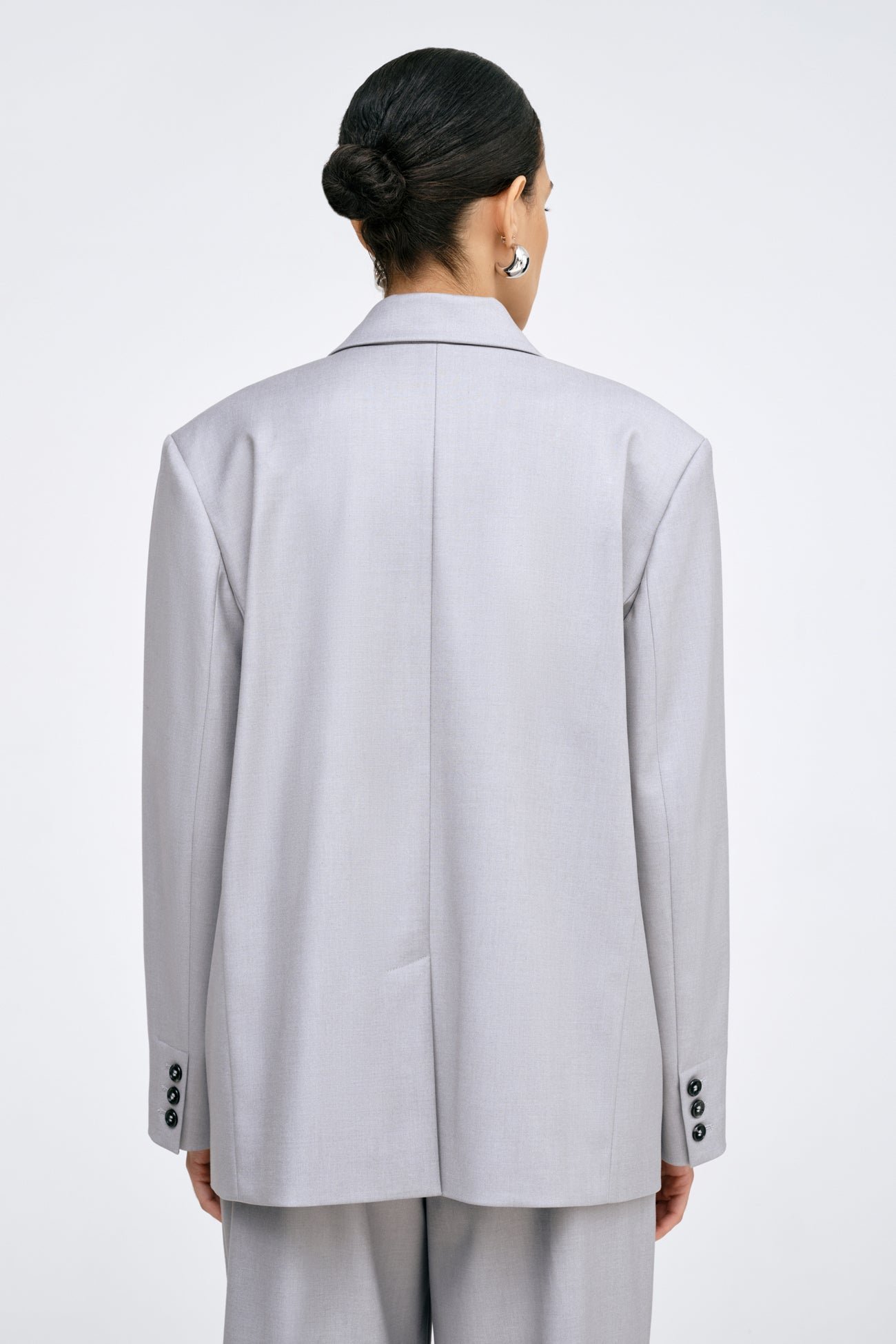 Harmoniously relaxed and structured, our Hannah Blazer is your next nine-to-wine staple. This boxy, long-sleeve blazer features a peak lapel collar, double welt pockets, and a center-back slit. She’s fully lined and tailored from soft polyviscose, with bold padded shoulders and versatile double-breasted buttons to complete her confident silhouette.[SPLIT]